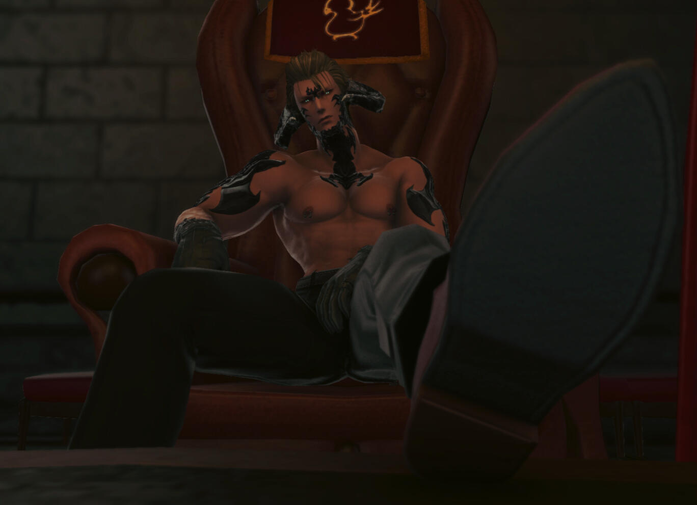 Torgan Kha was born in the Kha tribe on the fringes of the Xaela lands. His tribe’s culture had always encouraged interaction with non-Auri species. From a young age, his eyes were wide with passion for foreign ethnicities and their respective cultures. His dream was to travel the lands and experience every society. Through his early age, he worked towards that goal and as he reached adulthood, he went off on his adventures. On the cusp of entering his 20s, He settled in Doma for a while and with passing years he went farther and farther from his homeland until reaching the far North of Eorzea.He’d settled in Ishgard, now in his late 20s, the city plagued by relentless sieges from dragons. He’d been living in the cold, depressed city for some time now when he ran into the man that would completely change his life: Belz Brown. He had met him first in a tavern in the Brume, the man was much older than him, a Midlander with greying hair and a mature body. Having befriended him then, Belz had expressed such enthusiasm in learning about his journey that their meetings became increasingly frequent. Torgan would recount his adventures then the two would spend hours discussing different cultural practices and beliefs from across the lands. It was at their sixth meeting that Belz had confessed to him about having rather “unorthodox” beliefs for the region of Ishgard. Enraptured by this curious religion and having become trusting of his new dearest friend, Torgan jumped at the offer to come spectate some of their rituals.Belz promised to show him their practices in full, and so, Torgan viewed more and more rituals and gatherings and with each one, the devotees and Belz encouraged his participation more and more, the rituals growing in intensity and pulling him further and further out of his comfort zones until... he’d completely forgotten what other purpose he’s had in ishgard. He knew something wasn’t right. He knew he was being trapped but he felt unable to resist like moth to flame. Being with them... doing those rituals... he’s never experienced something so... fulfilling. Belz comforted him, gently coaxed his engagement and raved about how well he would perform for an outsider. Belz would say he might be chosen and one day offered for Torgan to join them... permanently. To have his initiation and make it official. Torgan didn’t know what to say at first but Belz has always shown him such great kindness. He was admirable, and he’d grown enamoured by his ‘power’ and presence. He felt whole in the cult... Spending time away from them to think about his decision, made him realise just how much he’d grown attached to it and so, Torgan went back.He closed his eyes and completely threw himself into their practices and if things couldn’t have been more incredible, he even became Belz’s chosen heir under whom he learned the more coveted and sacred of truths. He understood their purpose, understood the glory in sacrifice and felt like he understood the universe itself...Years passed and the Xaela had completely forgotten his goal of travelling or anything about his life before the cult. He’d been baptised into a new life, reborn, and so anything before that was dead and gone.And then... he was readyTorgan was a mature adult now, pushing his late 30s, it was time for him to take the reins. He was ready. He felt ready. He’d recited the ritual many times and had no more question to ask Belz. He was ready to accept his soul into his own body and continue to lead their cause for many years to come.The ritual had them both in a small, isolated room, the both of them having consumed substances to ‘elevate’ their minds into a trance-like state. Of course, Torgan was not aware at the time that he’d been the only one to have actually taken the illicit substances. Both himself and Belz were completely bare, only a myriad of candles lighting the room, the floors covered in pillows and satin sheets. And so, as the faint muffled sound of the other devotees chanting loudly in the next room seeped through the walls, Torgan and Belz melded their bodies into the night under the gaze of a new moon. However, the sensual ritual did not quite go as planned. As Belz sent Torgan into completely new realms of pleasure, that’s when he felt the first bite. The heavy painkillers and hallucinogens kept Torgan in a numb trance, his moans still ringing through as he found himself being devoured alive instead of him absorbing Belz. It was bloody.The ritual ended and... Torgan stepped out with no traces of sir Brown to be found left in the room.Torgan Kha became Belz Kha....And so the story goes.